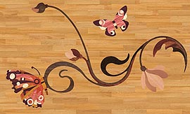 Относительно простые художественные элементы (стрелки, следы ног и т.п.) давно используются для "оживления" однообразного покрытия из штучного паркета. Сейчас уровень сложности элементов и сборок из них может быть самым различным - от относительно простых стилизованных орнаментов, цветов, животных и т.д., до довольно сложных композиций, приближающихся к настоящим картинам. Их использование создает неповторимый облик пола и практически снимает ограничения на воплощение авторских идей - у работающих в этом направлении дизайнеров появляется возможность создавать уникальные по стилю и удивительно красивые интерьеры.